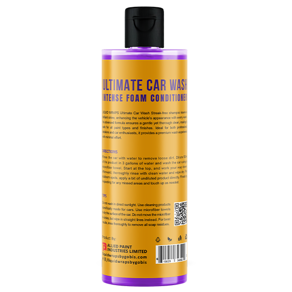 LIQUID WRAPS Ultimate Car Wash Streak-free shampoo leaves a brilliant shine, enhancing the vehicle's appearance with every wash. Its advanced formula ensures a gentle yet thorough clean, making it safe for all paint types and finishes. Ideal for both professional detailers and car enthusiasts, it provides a premium wash experience with minimal effort.